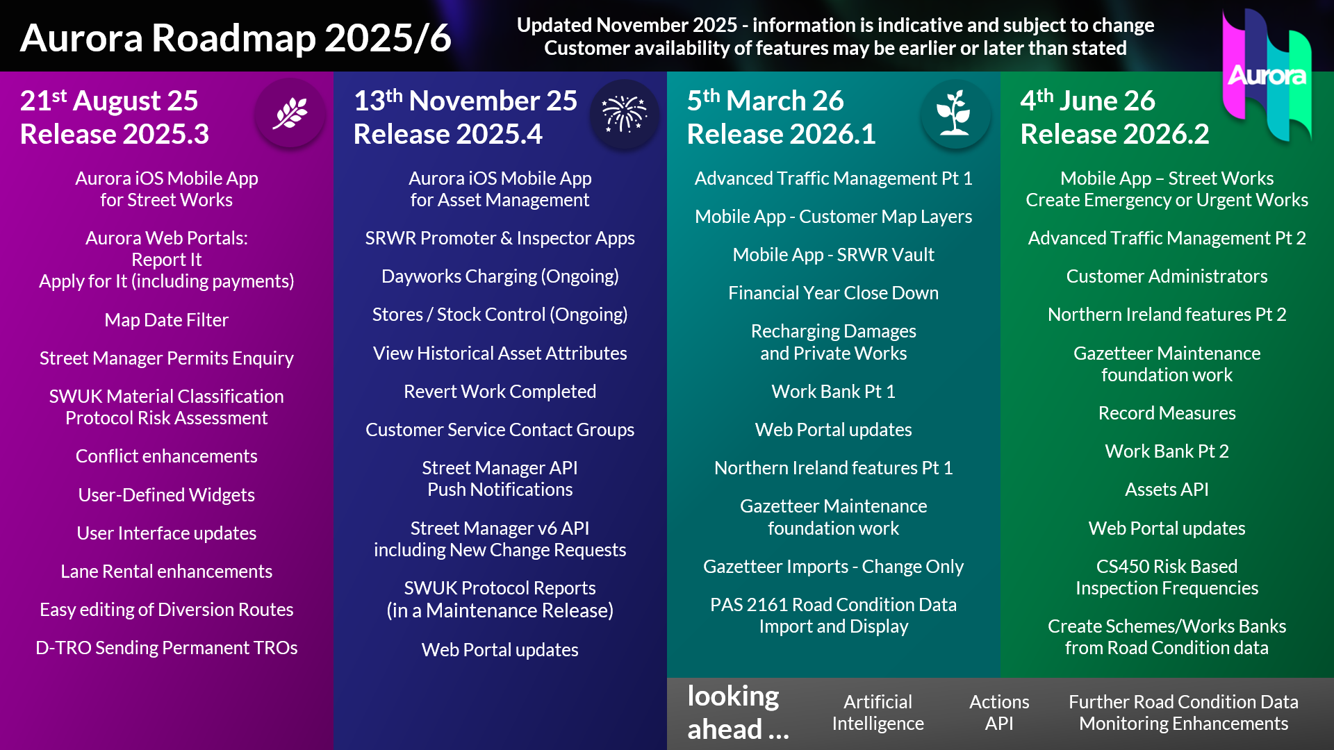 Click for a full-screen view of our roadmap, covering upcoming releases. Always subject to change – as our agile approach ensures we make the most of our resources and focus on quality.